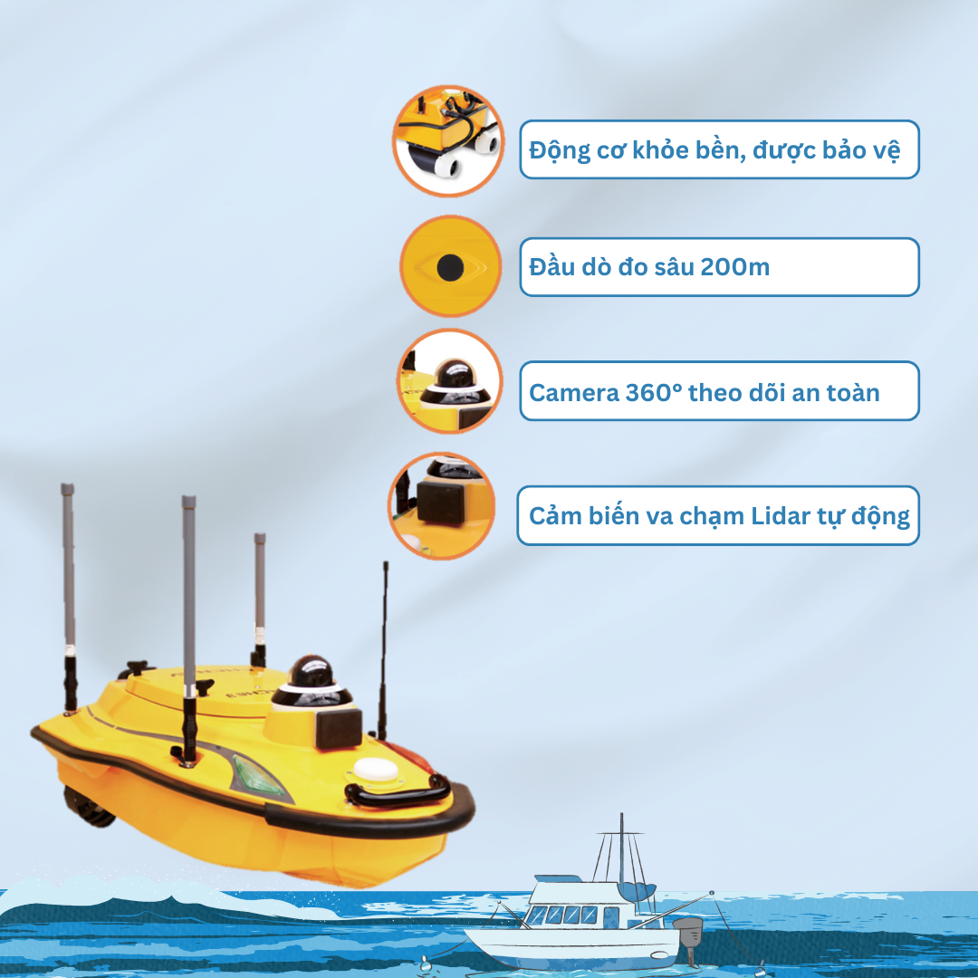 • Tích hợp cảm biến đa chiều, cảm biến tránh va chạm, giúp ổn định hướng di chuyển trong điều kiện sóng gió.